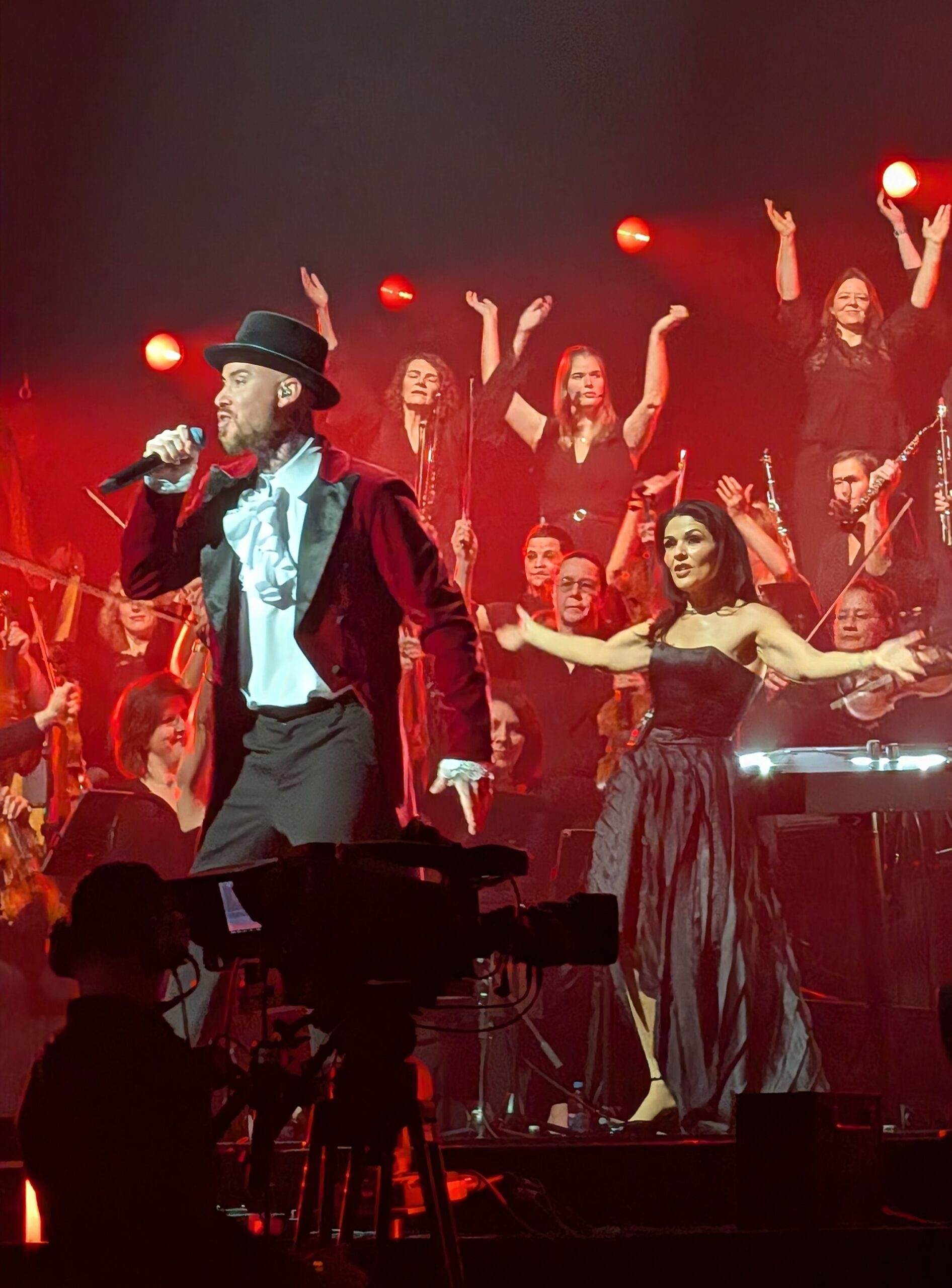 Das 80-köpfige Orchester war einfach eine Wucht, wie auch die letzten Jahre. Und in diesem Lenze wurde die Bühne wie eine leuchtende Wendeltreppe gebaut, die verschiedene Gerüste nach oben und unten lassen konnte. Das Ganze reichte bis zur Decke und hatte außerdem ein wenig den Charme eines UFO’s.